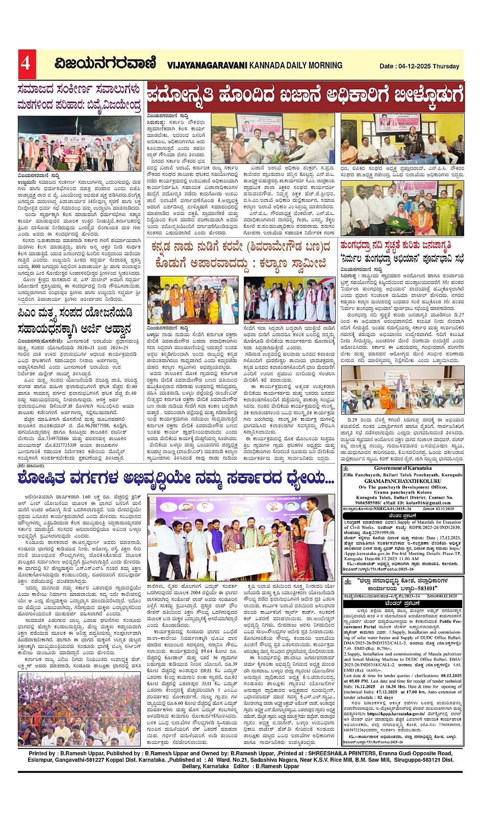 vijayanagaravani e pepar 04 Dec 2025 Page: 4 December 04, 2025 << First << 4 >> Last >> Page 1Page 2Page 3Page 4 × vijayanagaravani e pepar 04 Dec 2025 vijayanagaravani_e paper page-01vijayanagaravani_e paper page-02vijayanagaravani_e paper page-03vijayanagaravani_e paper page-04 << First << 4 >> Last >> vijayanagaravani_e paper page-01vijayanagaravani_e paper page-02vijayanagaravani_e paper page-03vijayanagaravani_e paper page-04