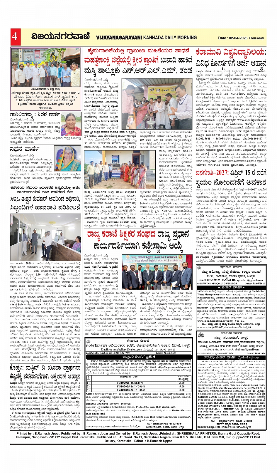 vijayanagaravani e pepar 02 Mar 2026 Page: 4 April 02, 2026 << First << 4 >> Last >> Page 1Page 2Page 3Page 4 × vijayanagaravani e pepar 02 Mar 2026 vijayanagaravani_e paper page-01vijayanagaravani_e paper page-02vijayanagaravani_e paper page-03vijayanagaravani_e paper page-04 << First << 4 >> Last >> vijayanagaravani_e paper page-01vijayanagaravani_e paper page-02vijayanagaravani_e paper page-03vijayanagaravani_e paper page-04